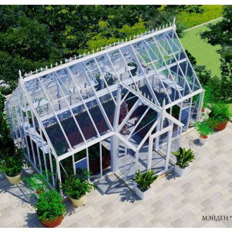 Теплицы верхнего ценового сегмента модельного ряда Мэйден характеризуются схожими конструктивными характеристиками и внешними особенностями, а это викторианский объемный декор на коньке, жалюзийные вентиляционные окна на фасадах, большие люки на крыше, распашная дверь и т.д. Модели отличаются композицией, модификацией остекления, размерами и наличием или отсутствием пристроенных парничков снаружи.